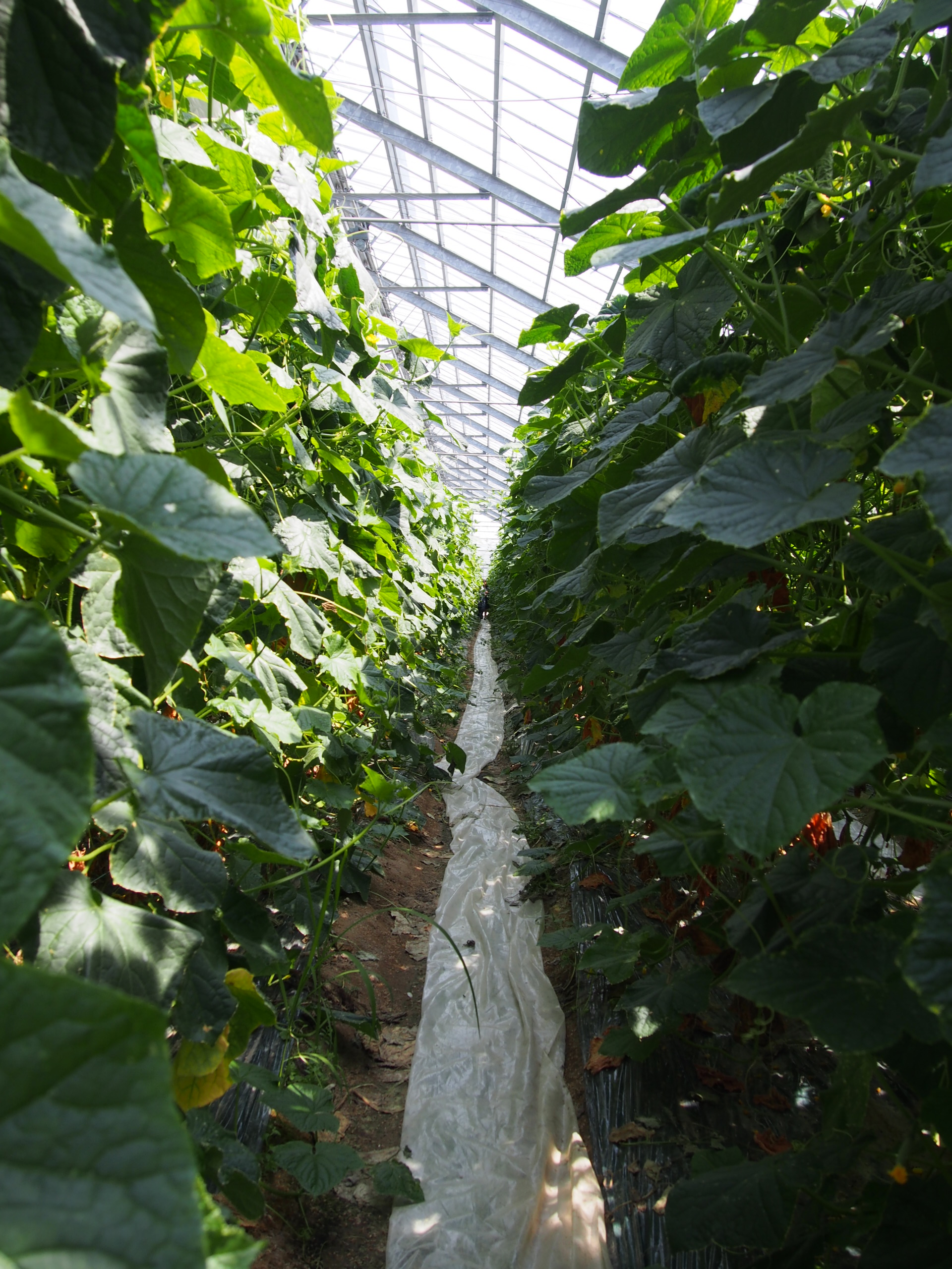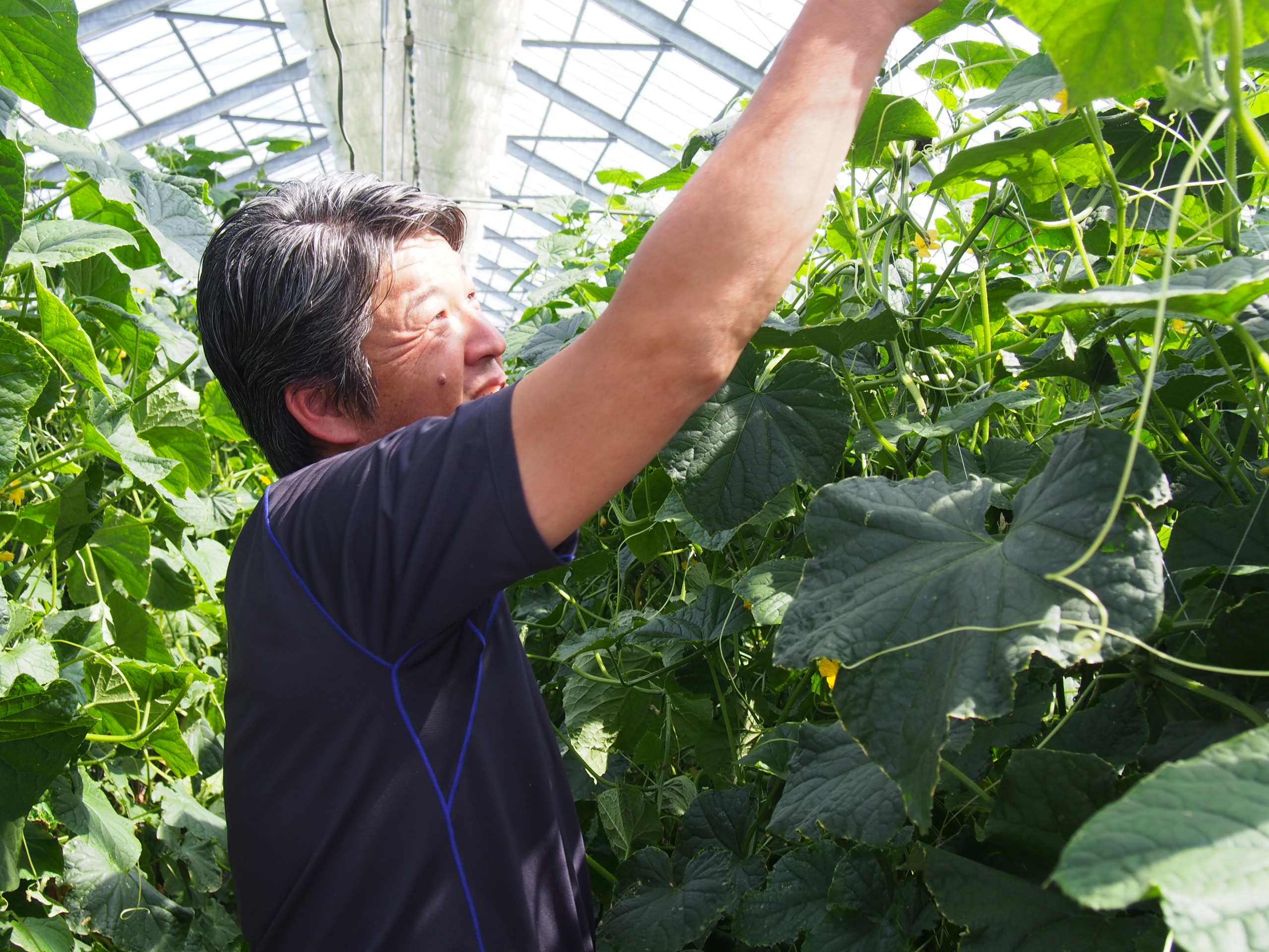 生温かい巨大なビニールハウスの中にきゅうり畑が生い茂っていました。